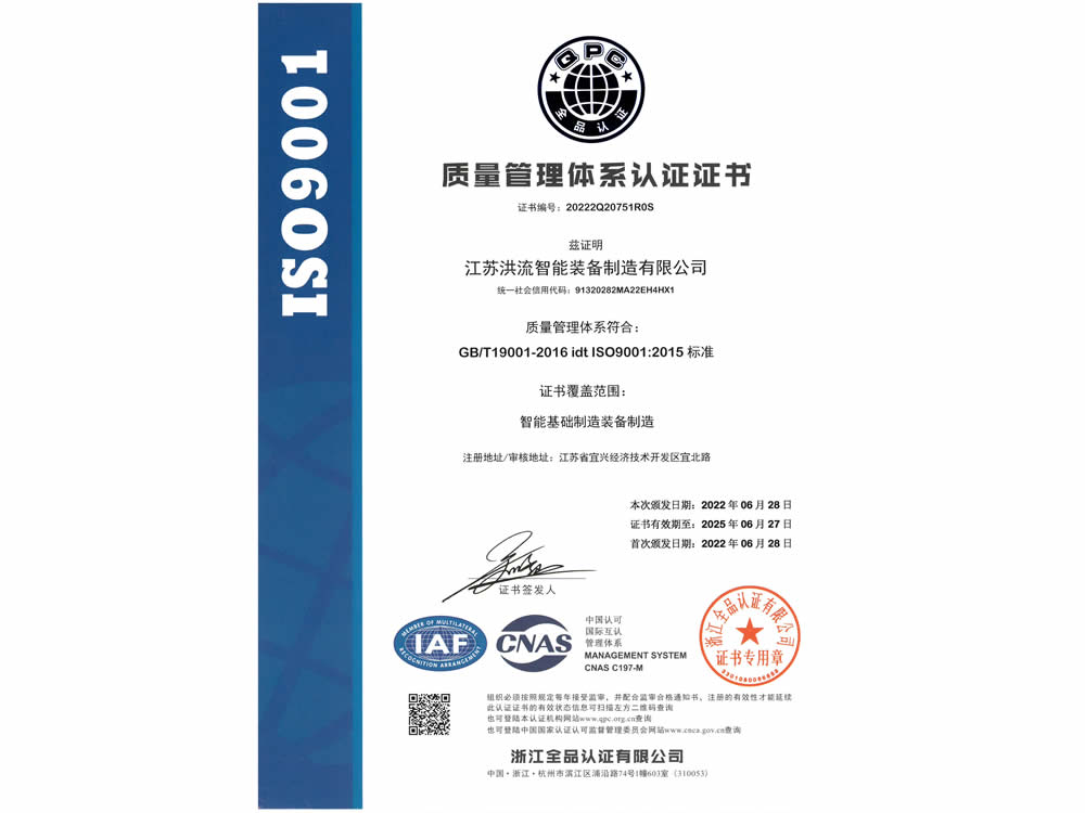 质量管理体系认证证书